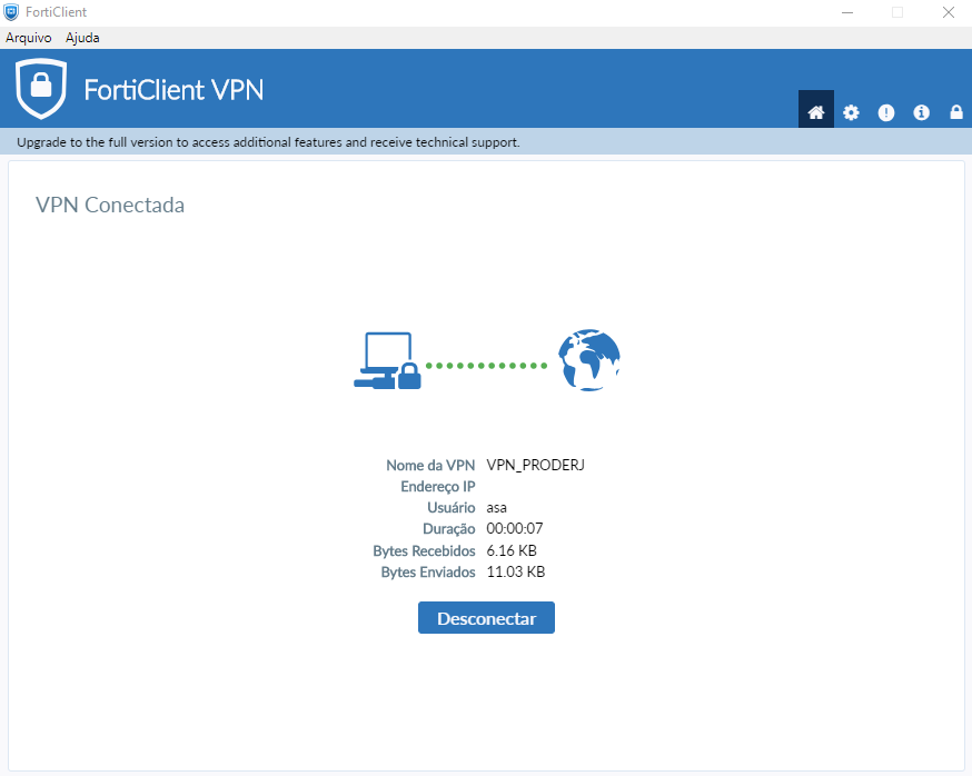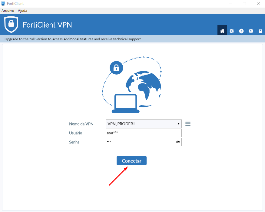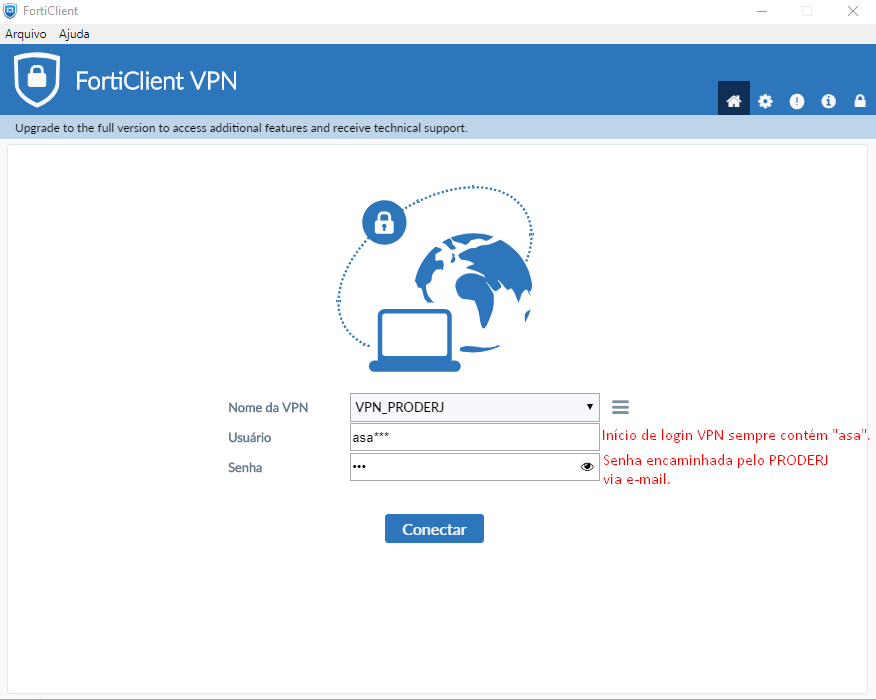 Para configurar a VPN, você precisará das informações de usuário e senha, que serão fornecidas por e-mail.