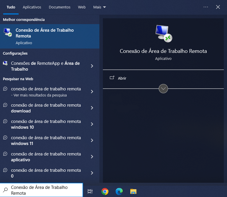 Procure por Conexão de Área de Trabalho Remota no menu iniciar.