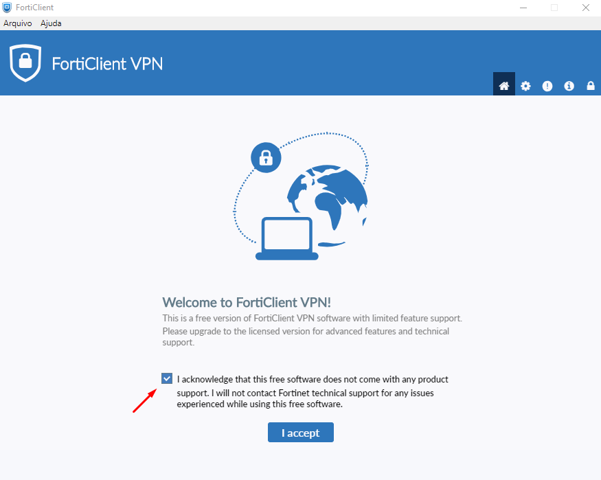 Para iniciar a configuração, baixe o FortiClient VPN:
