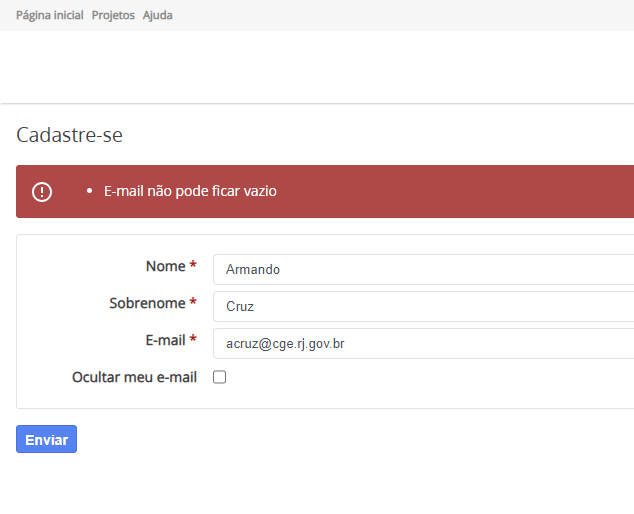 - Caso o e-mail não esteja associado a conta do usuÔrio, favor preencher de acordo com o seu e-mail institucional CGE. Nao esqueça